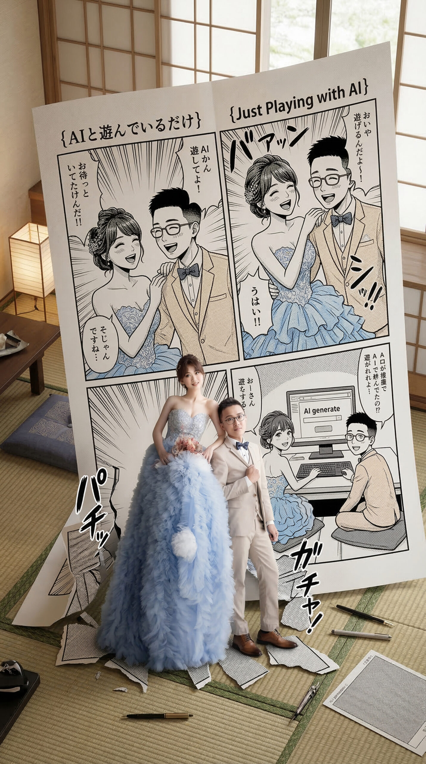 AI創意主題/「愛情,怎麼可能只存在漫畫裡」 發佈留言 / AI攝影, 婚禮精選, 婚禮紀錄, 攝影師 / 作者: 光點攝影Studio 原來主角,是我們自己 原來主角,是我們自己童話、漫畫、電影裡的愛情,其實也可以是你的故事。